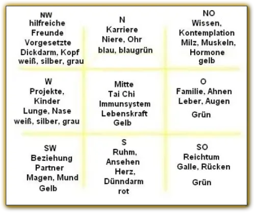 Feng Shui - Entsprechungen von Organen und Himmelsrichtungen